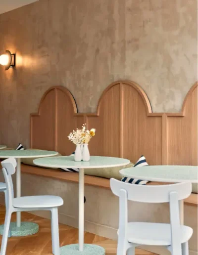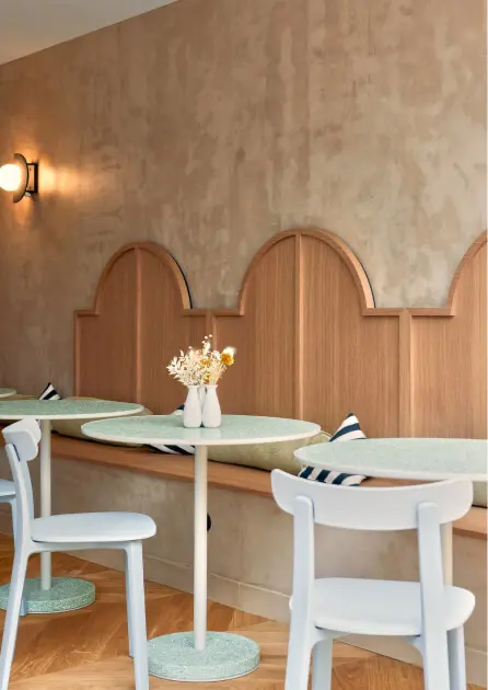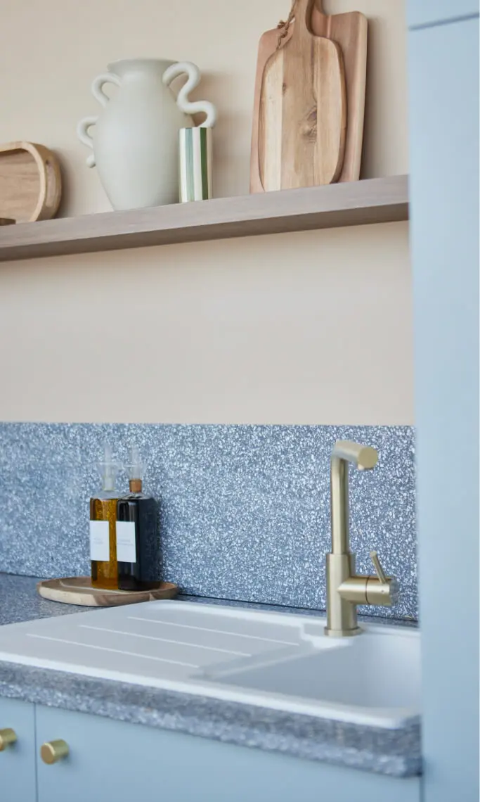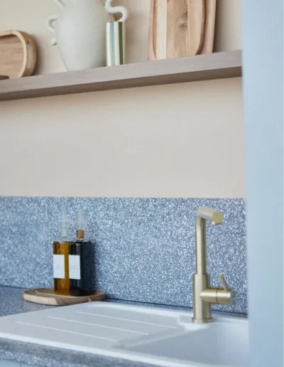 Chez K.CRÉATION, nous intégrons Ostrea dans nos projets de cuisines sur mesure et d’aménagement intérieur à Rennes. Ce matériau s’adapte parfaitement à différents usages :